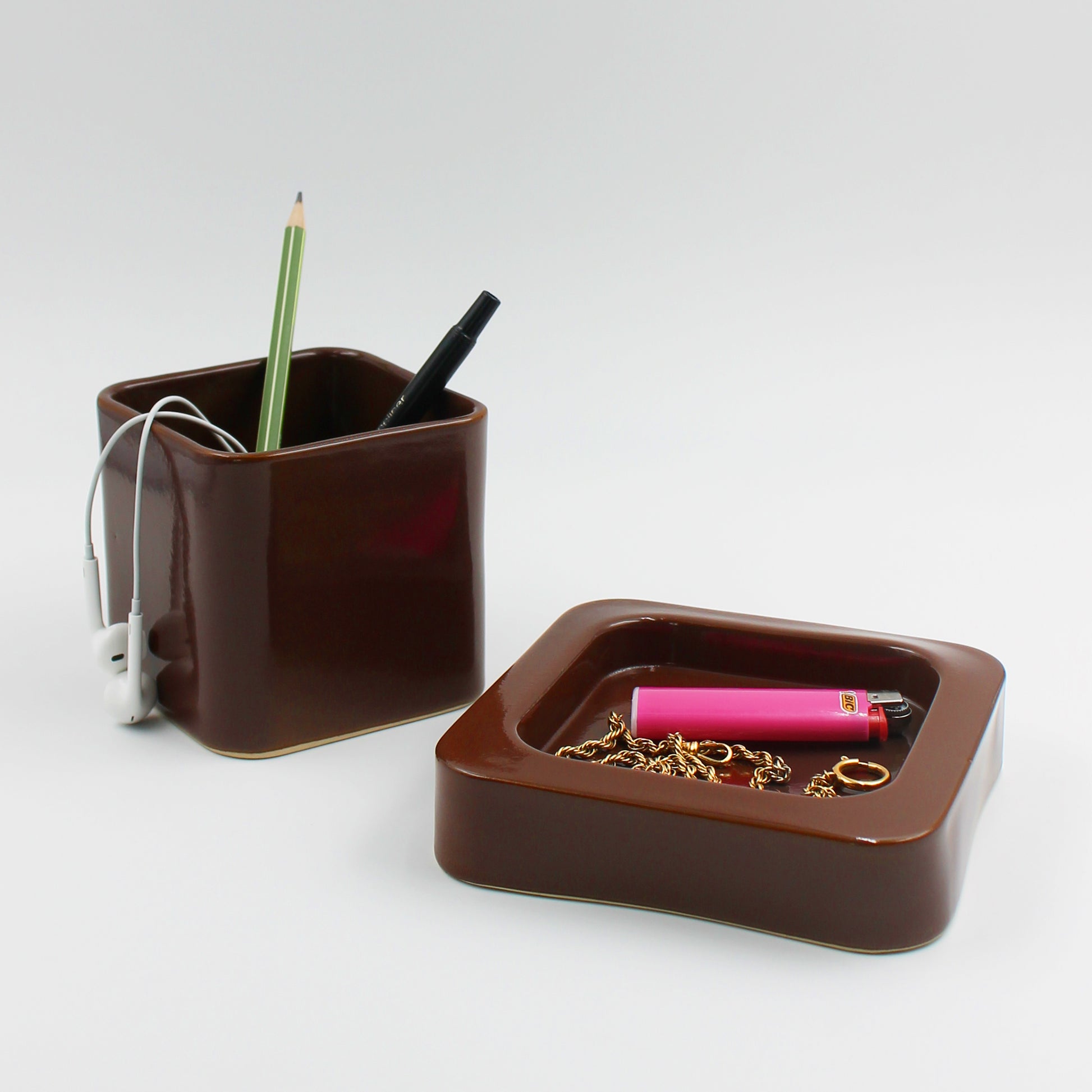 If you're undecided, so is it. This ceramic set, which includes a pot and saucer, can be used in a variety of ways. Planter, fruit bowl, cutlery jar... Its functional design makes it an essential part of the Muée Objects collection. Designed in Paris and made in France, it is available in four colors: café, chou, coquette and vanille, for a coordinated look or to playfully mismatch them. All our objects are handmade. As a result of artisanal craftsmanship, they may vary slightly in color or appearance. These differences reflect the precious know-how that gives them their unique character.
